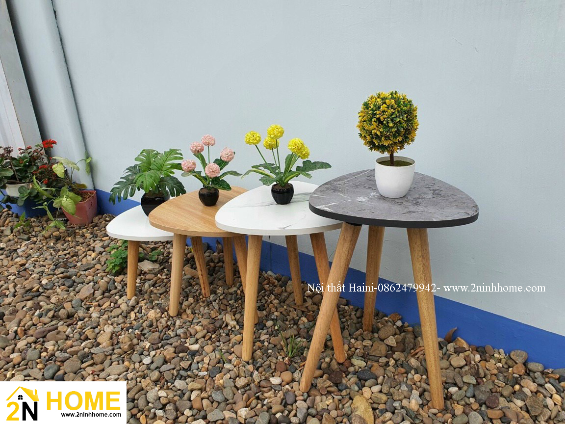 Bàn trà chân gỗ, có các chiều cao khác nhau từ 25cm đến 65 cm.