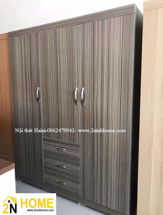 Tủ có kích thước rộng 1m8 với 3 cánh mở và 3 ngăn kéo ở giữa. Phía trong có các thanh treo và các đợt chia. Đây là thiết kế 3 cánh lớn, 1m8.